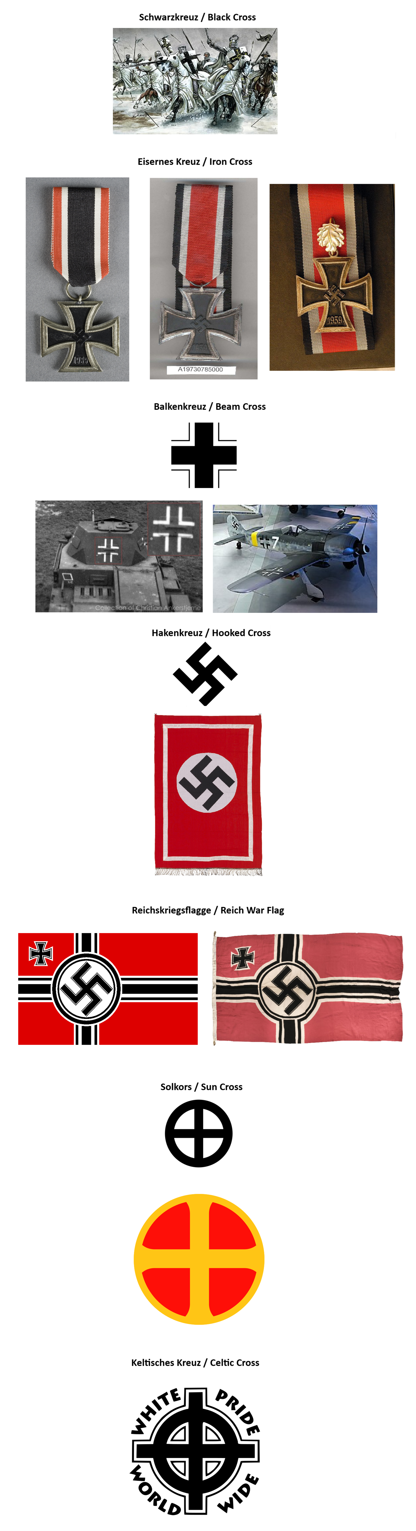 >>531181792the national socialists has always been christian- https://rentry.org/Deus_Vult_KA>Schwarzkreuz / Black CrossThe symbol of the Teutonic Order of Knights.>Eisernes Kreuz / Iron CrossA medal for bravery. Hitler earned two of them as a soldier, as well as a Bavarian Military Merit Cross.>Balkenkreuz / Beam CrossUsed by the ww2 army (Wehrmacht/Luftwaffe).>Hakenkreuz / Hooked CrossThe symbol of the national-socialist party.Also called a "swastika", by jeets.>Reichskriegsflagge / Reich War FlagThe flag of the ww2 military, it features a Black Cross in the top left, and a Hooked Cross off-center, inside of a Nordic Cross (Nordisk Kors).>Solkors / Sun CrossAlso known as St. Olav’s Cross, it was used by the official nation-socialist collaborators in Scandinavia.>Keltisces Kreuz / Celtic CrossA symbol used by White nationalists today.