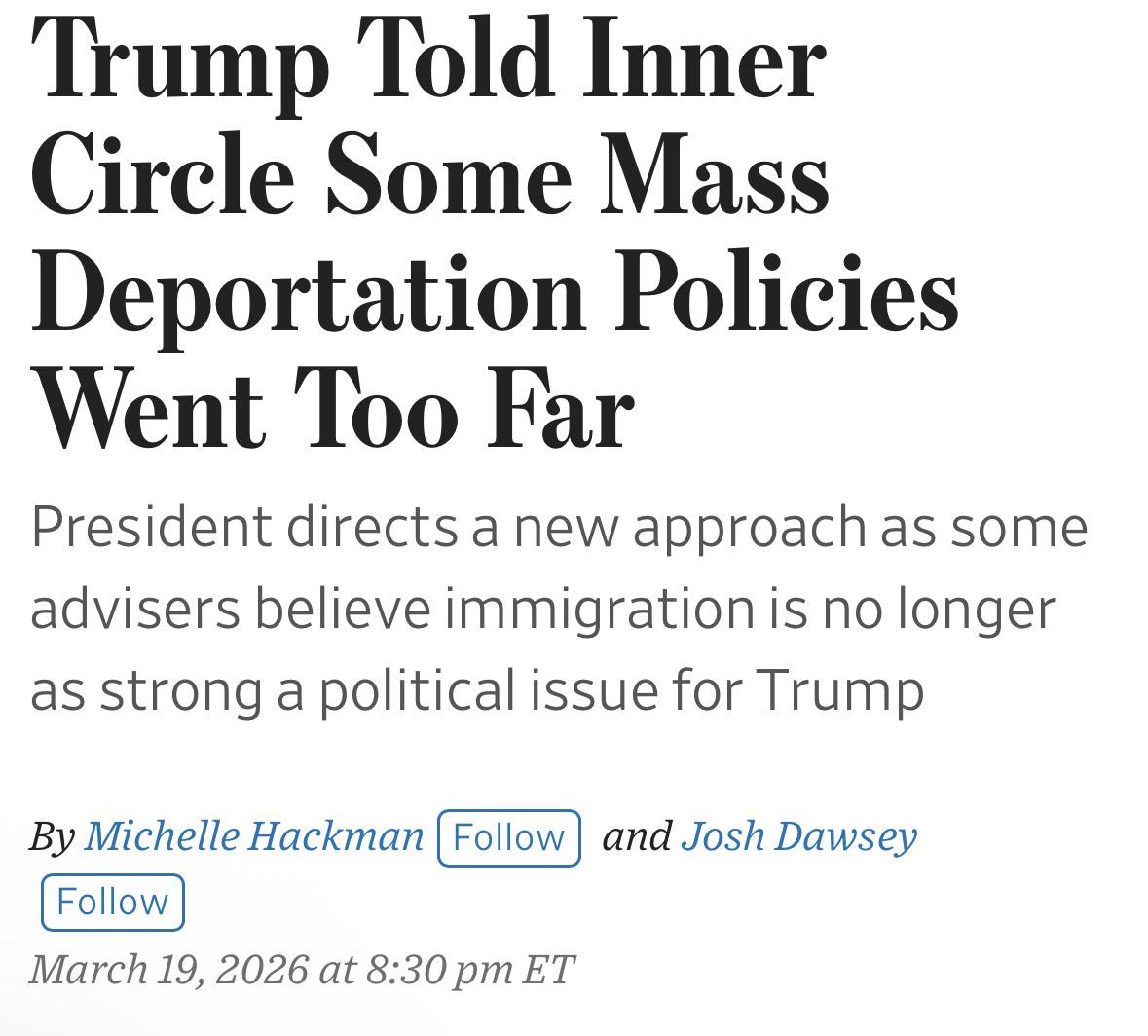 >Trump told his inner circle that some mass deportation policies went too far