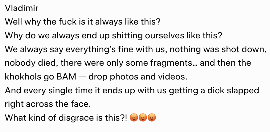 When will fatniks stop with the "we achieved tremendious tactical success, we destroyed everything 10x over, the only thing holding everything back is the dang orange cheeto not having a plan!"They repeat this shit as a mantra, and I'm not sure it's cope, but psychological inability to let go of the western military fanboyism.