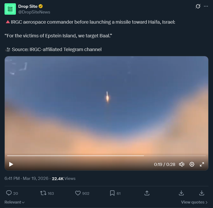 >>531186507we are witnessing literal biblical end of days anon. embrace ithttps://x.com/DropSiteNews/status/2034777353394512376