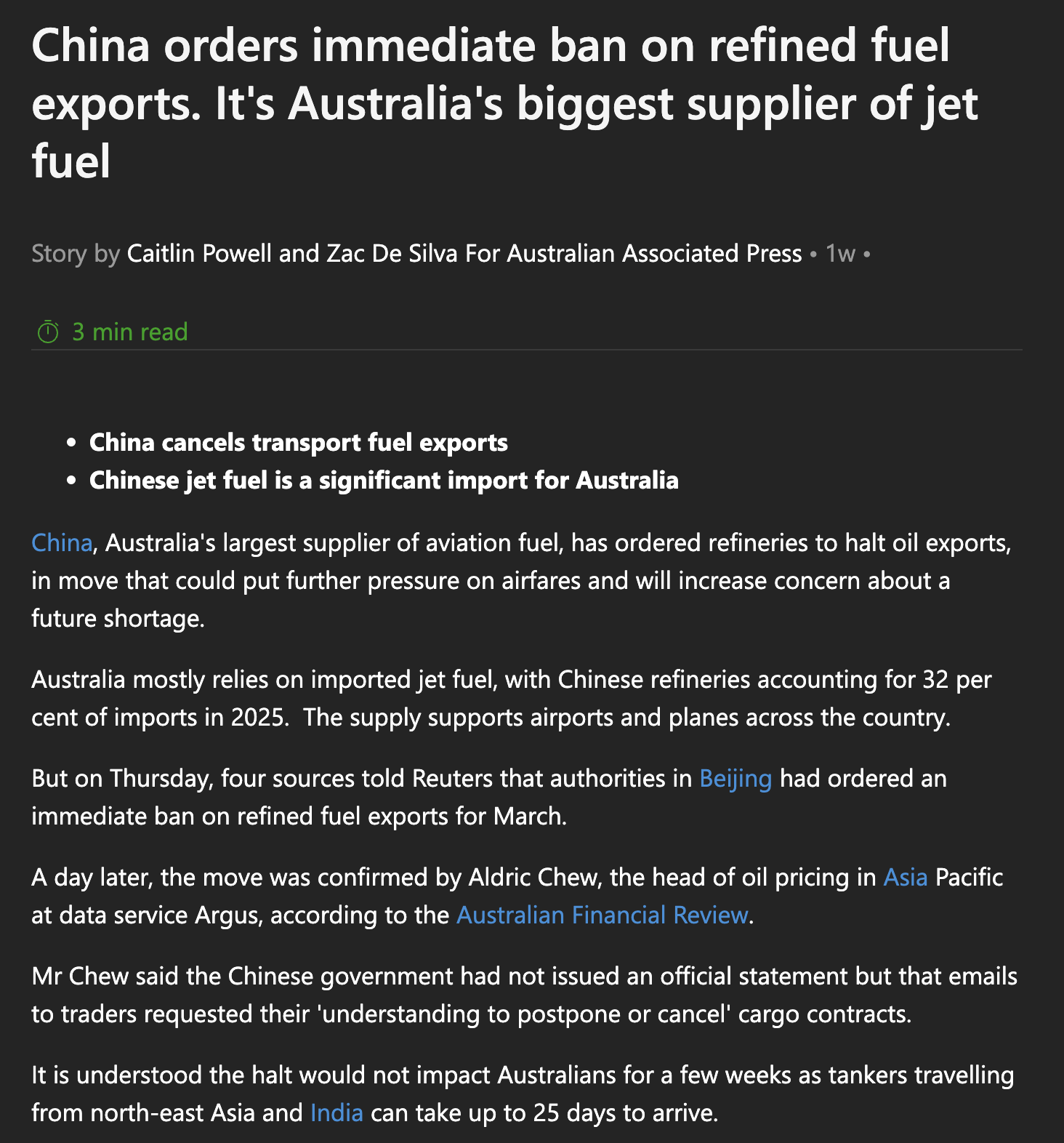 >>531187667China has stopped exporting fuel of any description to everyone as of a few days ago. They are now hoarding for themselves only. Iran has blocked the strait for anyone even remotely associated with the US, that includes us.