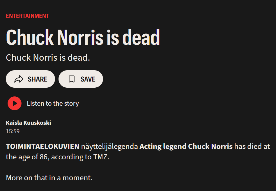 >Chuck Norris is deaddamn. R.i.P in peace