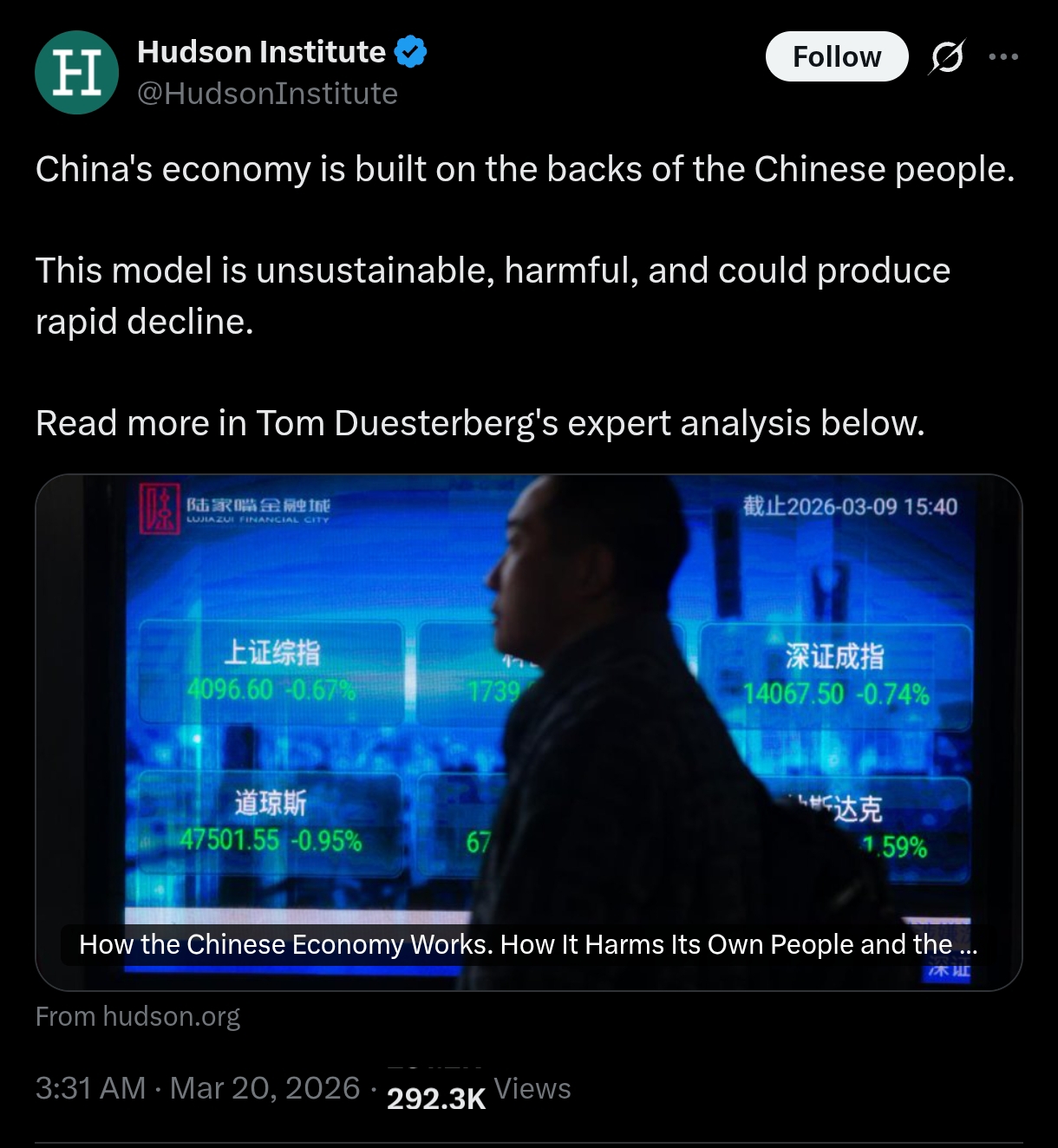 >China's economy is built on the backs of the Chinese people.>This model is unsustainable, harmful, and could produce rapid decline.The 'at what cost' propaganda is going schizo again.