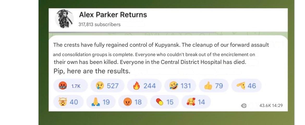 Anyone have any news on Kupyansk, or is romanov dooming?