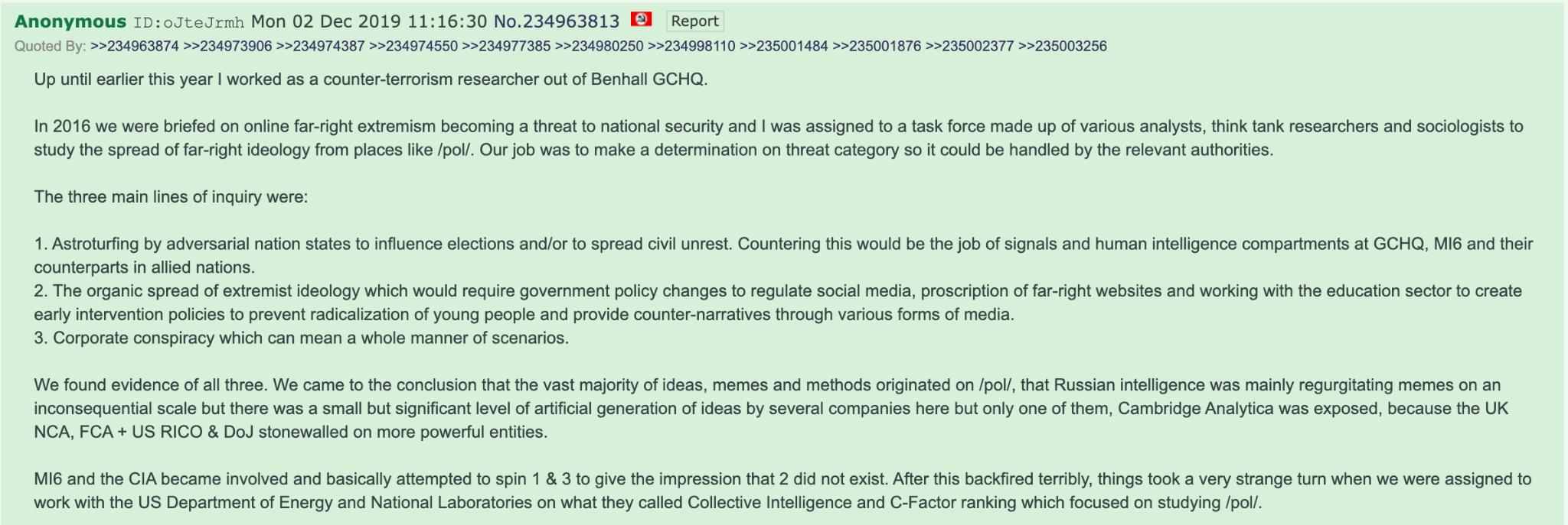 If the FBI didn’t literally control the mod seats on this board, every nation state in the world didn’t shill this board to death, and if the captcha wasn’t progressively engineered to prevent rapid anon posting, we would have already conclusively won long ago.They fear and envy collective intelligence.