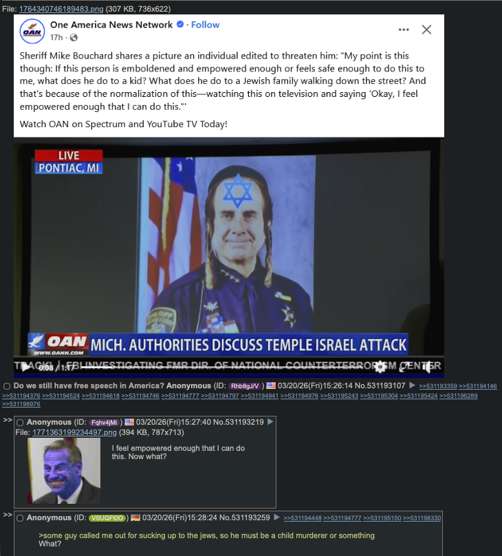 >>531193107No. On the day the bombing started someone downloaded everything from my hard drive. If you were on a dissident list they started running down it in case you decide to oppose the war. Expect arrests on false pretenses from Patel's FBI if you decide to openly oppose the regime.