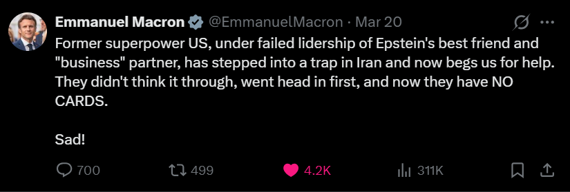 >>531193912https://nitter.net/EmmanuelMacronFake&gay (just like Macron).