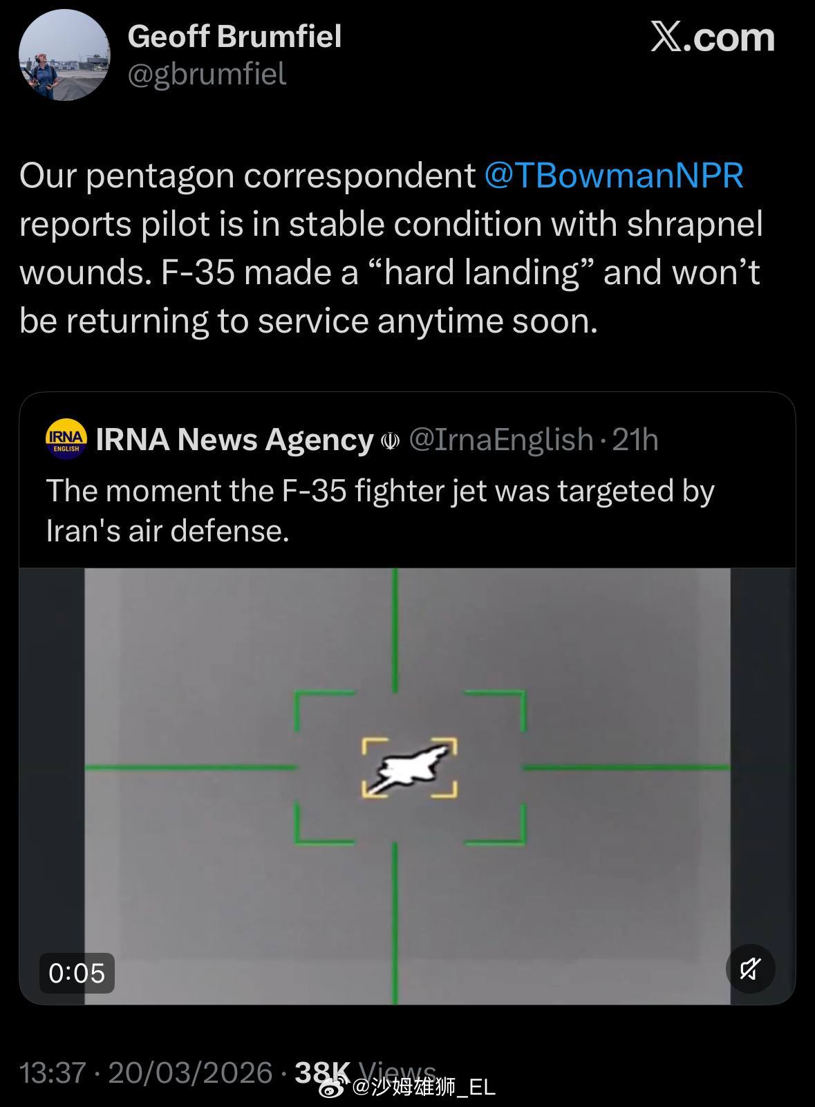 Shrapnel wounds on the pilotPlane made a hard landing and will get trashed.Enjoy, /k/opers.Iran effectively shot down the F-35 for all accounts and purposes.