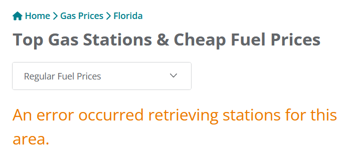 Is anyone else having trouble getting GasBuddy to load prices?https://www.gasbuddy.com/gasprices/florida