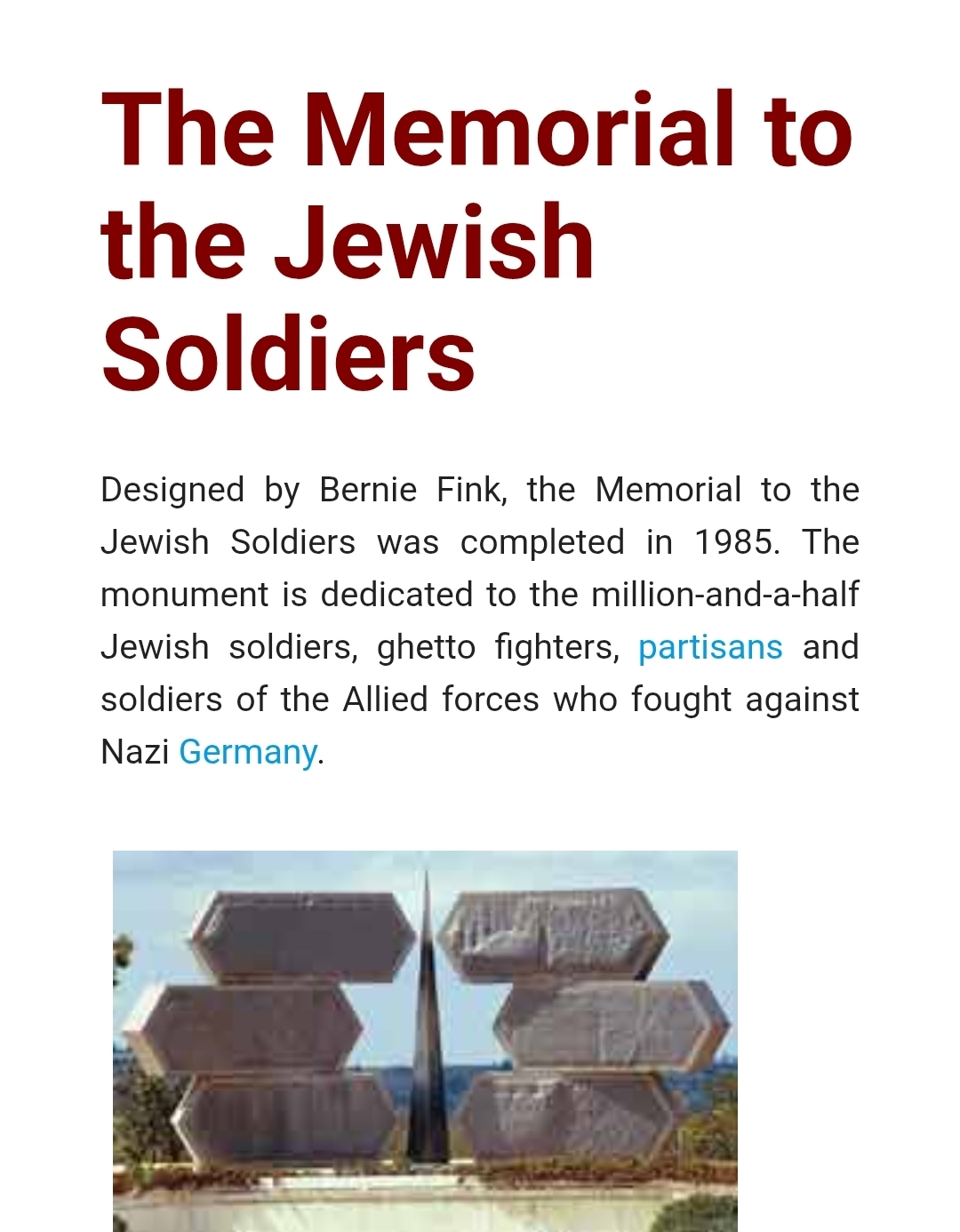 >>531210235I asked another clanker and it linked me to this which celebrates Jewish soldiers first and foremost. Its even hexagonal like the star of David. What the fuck.Sauce: https://jewishvirtuallibrary.org/monuments-in-israel-commemorating-the-holocaust