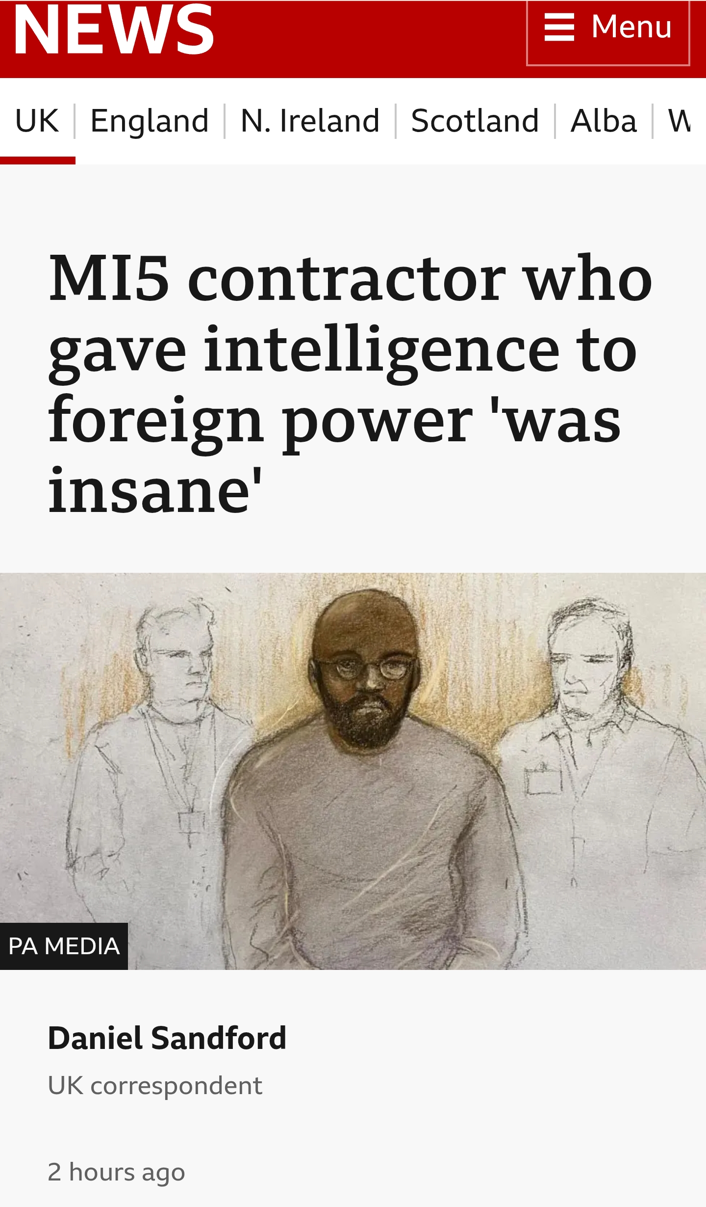 >In November 2024, while still mentally unwell, he emailed the embassy of a foreign country information that - according to the judge Mr Justice Hilliard - "related to security or intelligence".