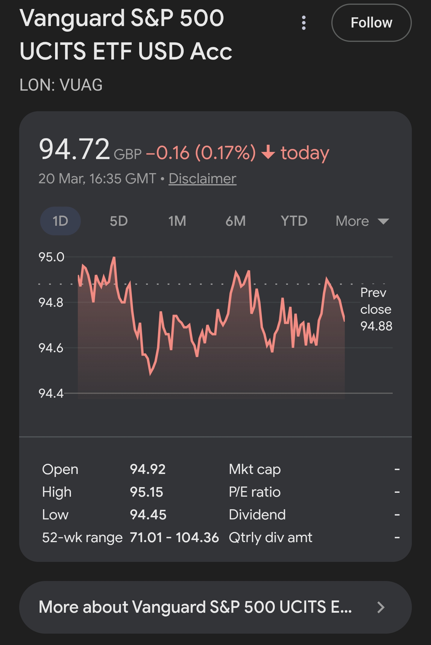 I just dollar cost average into VUSA myself, just long term, stable investing.