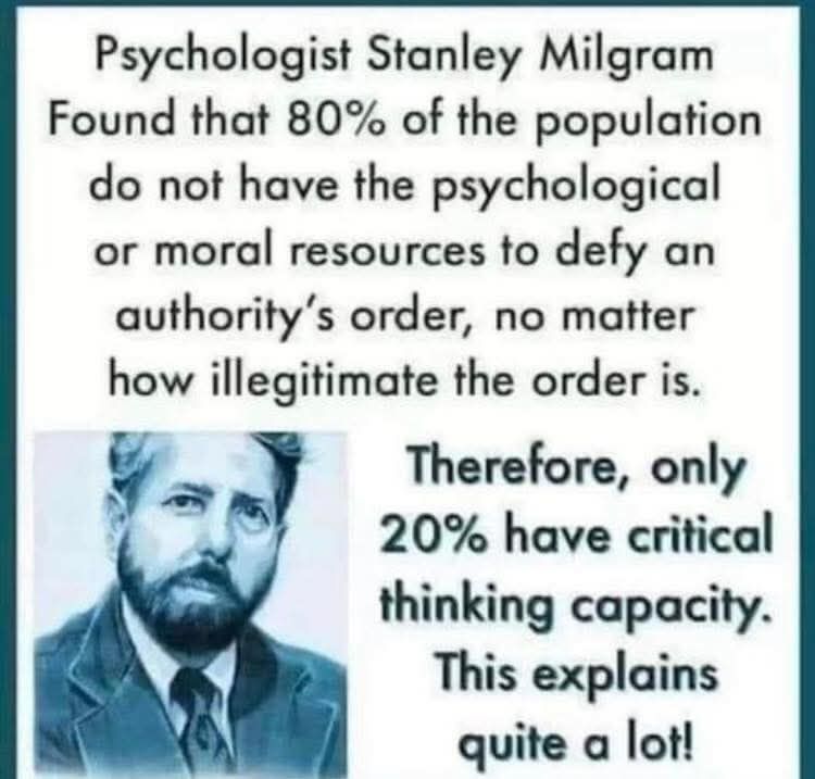 >>531213876the entire affair basically completely broke my faith in humanitythere were vaxxoids who demanded we be jailed or even executed for not letting the government inject us with an experimental vaccinethese are the same people who turned in jews during the holocaust, but not because they were actual antisemites, but because the government said it was what they should do.~70% of people will just blindly go along with whatever social consensus is.