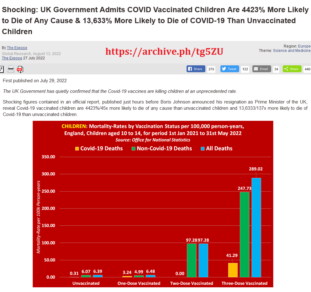 >>531232522>But covid caused permanent dead in approximately 25.3 kids per million in the US in 2023.No.25.3 kids per millon died with COVID not of COVID.Big difference.Learn how the "dead by" and "deat with" statistic was fabricated.Basically if you tested positive positive to COVID and died in a range of 60 days of any reason you were computed as a COVID death.Tested positive and died in a car crash? Death by covid.A piano fall on your head? Dead by covid.This is not even a joke.The worst part is how they tampered with the data and completely ruined it to hide the real numbers.Once the first wave of covid shots rolled out they changed the criteria to test people dying from covid.They changed the window from 60 days to a few weeks, that's why after the first rollout of vaccines you saw big numbers of less people dying.BECAUSE THEY FUCKING CHANGED HOW THEY COUNTED THE DEAD.FUCKING NIGGERS.