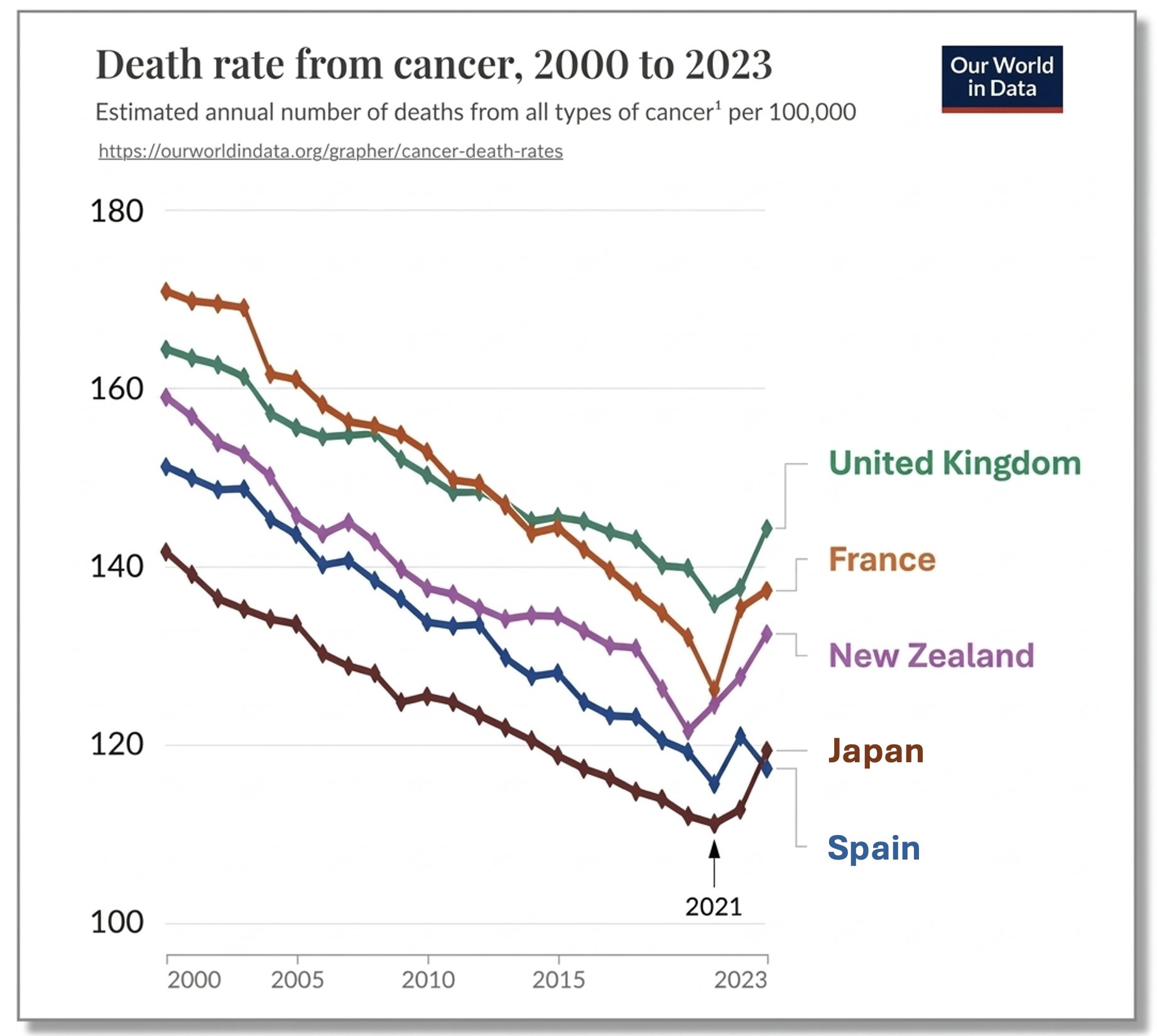 >>531233004If "cancer is the next covid" and it has already started, there should be clear, measurable increases in cancer rates right now.What data are you basing that on?
