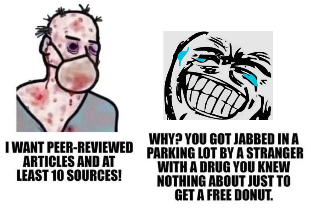 >>531216820>science and studies are fake dont trust it>science and studies are real when the same people release something that can be harvested into a spammable antivax memecult