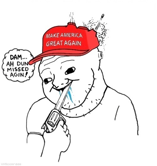 >>531213799God I hope so.Let his foolish voters suffer. Farmers killing themselves is a good start. Right wingers being anti ICE was great.MAGA needs to feed its children into the meat grinder of the middle east.