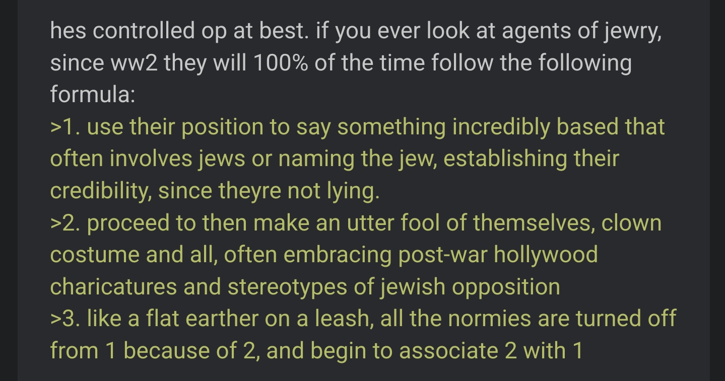 >>531245701>>531245856yep. pic related>>531244498hang in there, it has to come undone, you can only fleece the goyim for so long until he awakensand pissed off white people are the greatest force known to history when they are madthe ONP boomers are going to get really mad when a foreign government gets put first before them and the endless immigrants dont stop. just the ones causing an issue for a dozen jews here. they know deep down its not a solution, just a temporary stay