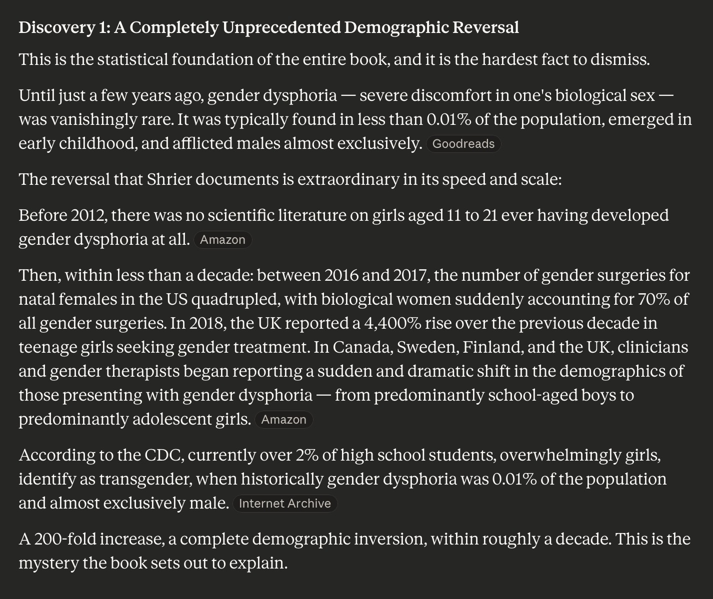 >comprised entirely of castration and unnaturally consuming hormones not meant for that individual