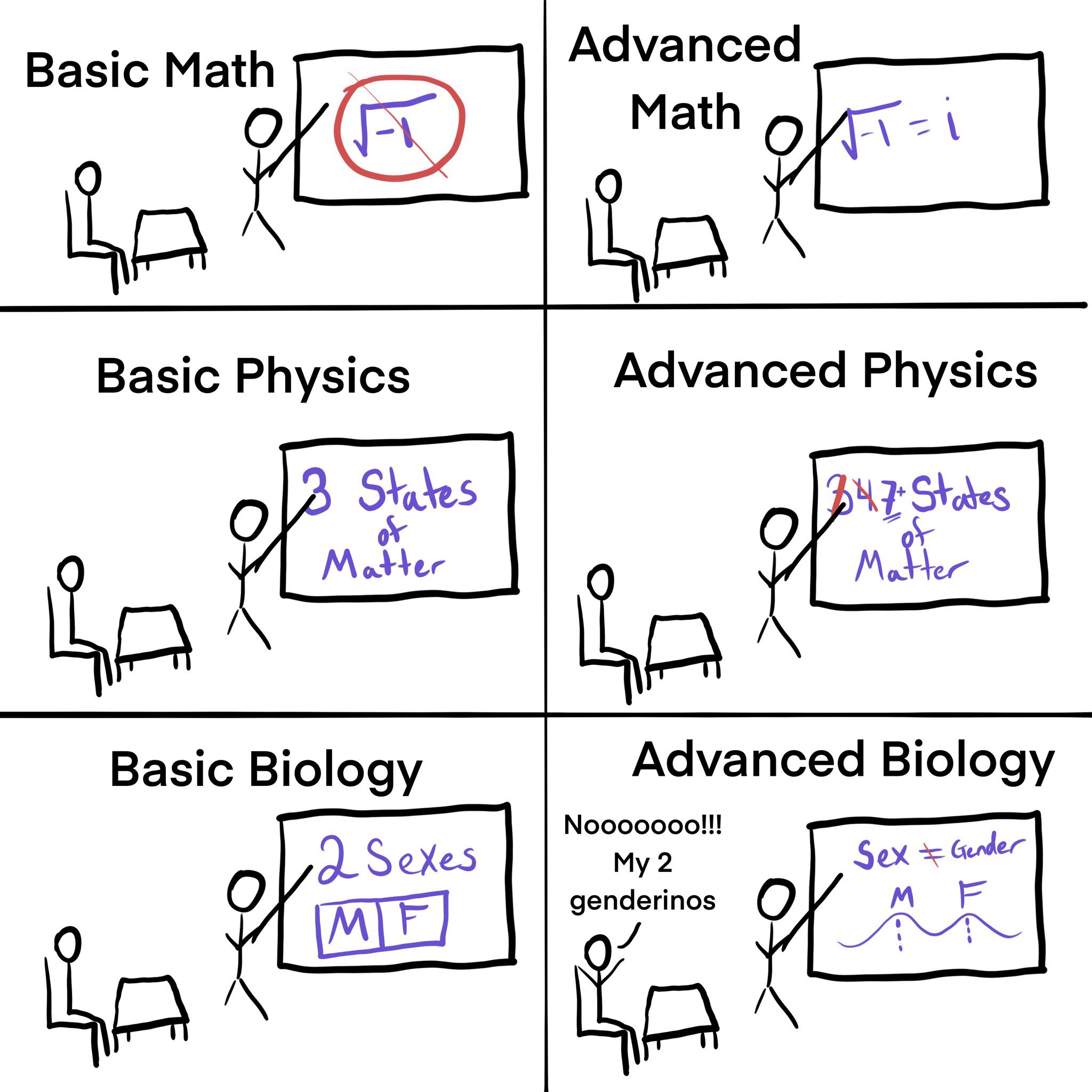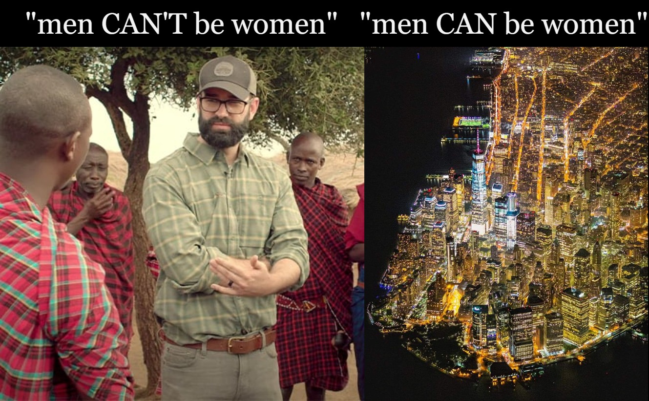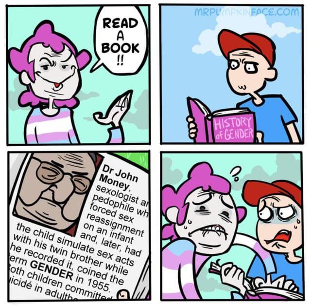 There were societies that practiced cannibalism, child sacrifice, ritual prostitution. There are African tribes where the men dig holes in the ground and fuck them so that the earth will "give birth" to animals for them to hunt. These societies had the same delusions as you, does that make them right? The vast majority of people societies throughout history did not share in these delusions. Again, word games can't trick material reality. You can find an exception to any rule if you look hard enough, but this doesn't invalidate the rule. I once argued with someone who said that no one knows how many fingers humans are supposed to have, only how many fingers a person is most statistically likely to have. Trying to formulate a paradigm around the outliers leads to absurd conclusions like this. I don't care if some random group of 100 people who never developed written language thought there was a difference between sex and gender. They were wrong and you can go live with them if you hold them in such high esteem. The meta argument is that you're playing word games again. When I said "nobody believed x" you countered with the argument that a statistically insignificant group of people did believe x. It's so tiresome.