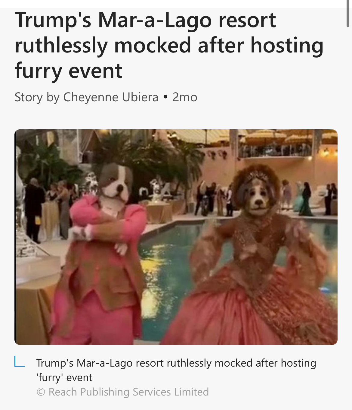 >>531255772That’s where the dog people were from! The furry party at mar a lago! Nice>>531255789