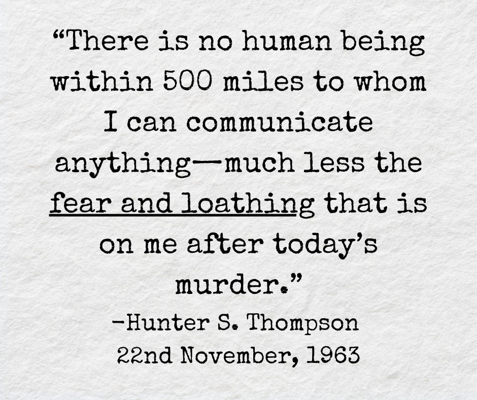 >>531258479seems like hunter was deeply affected by jfk getting jfk'd and rfk is the last remaining kennedy? hunter also was suicided by gunshot
