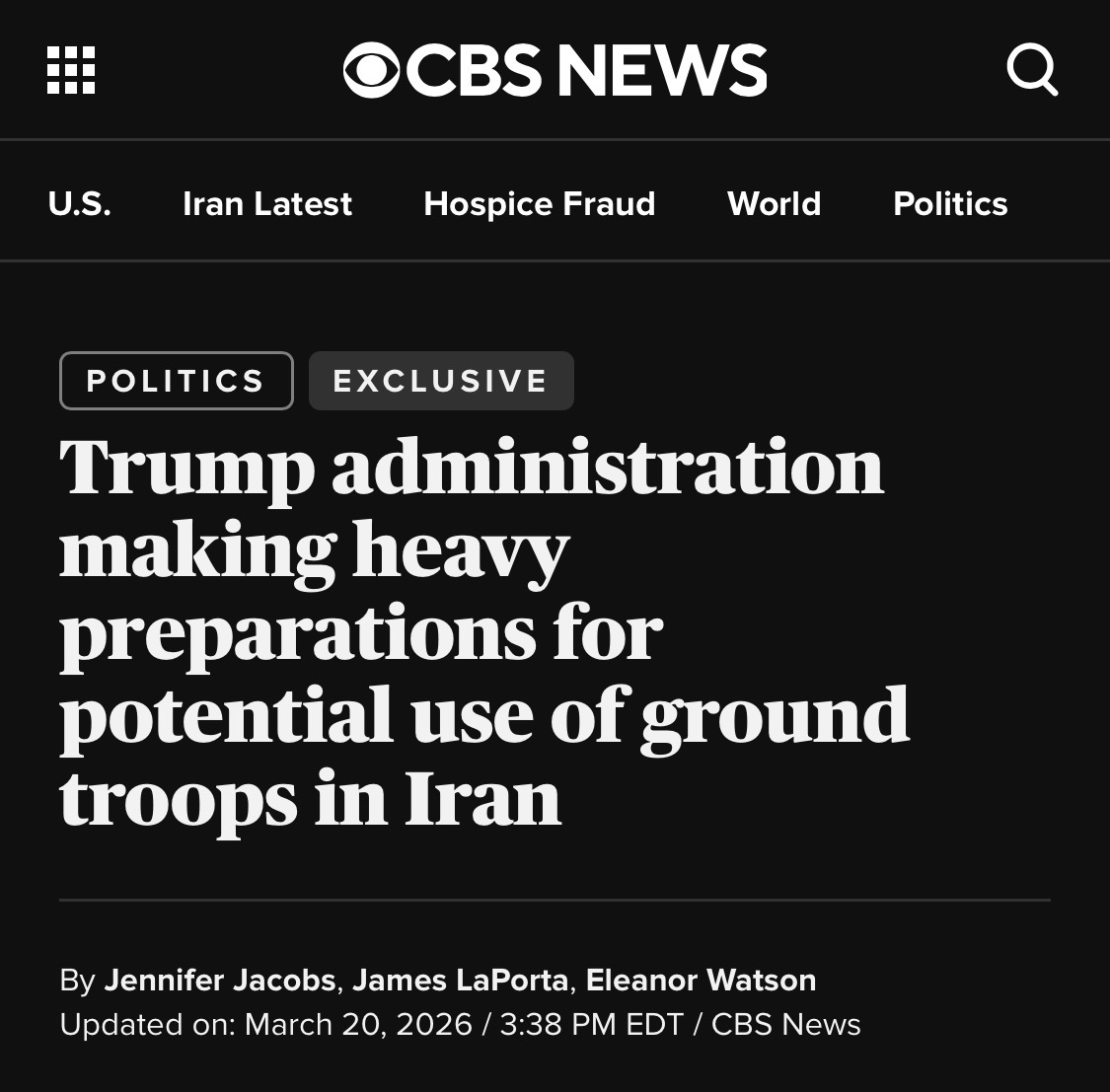 Trump said no plans to send ground troops to Iran: https://www.youtube.com/watch?v=1s5hcTvqkGM