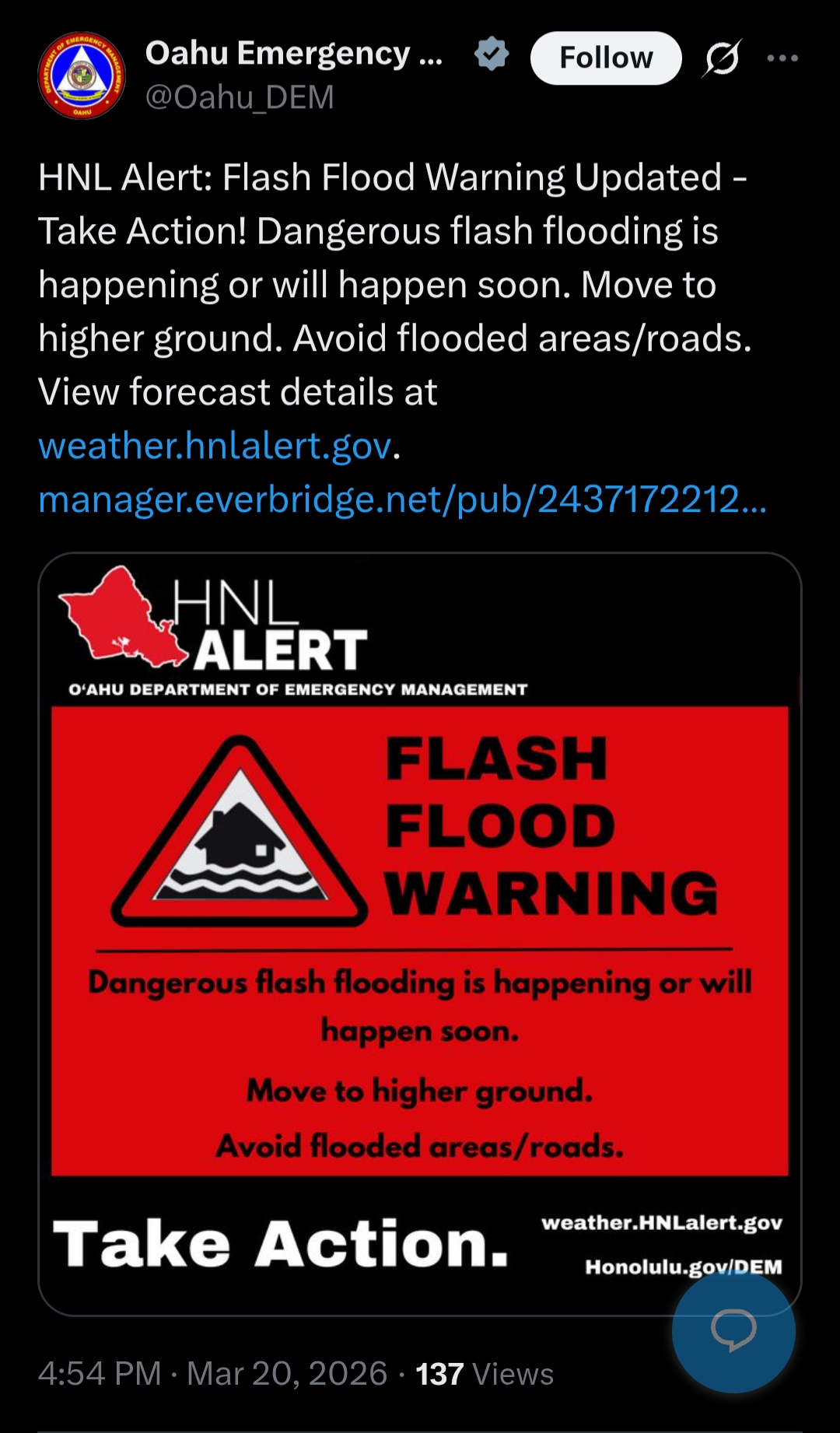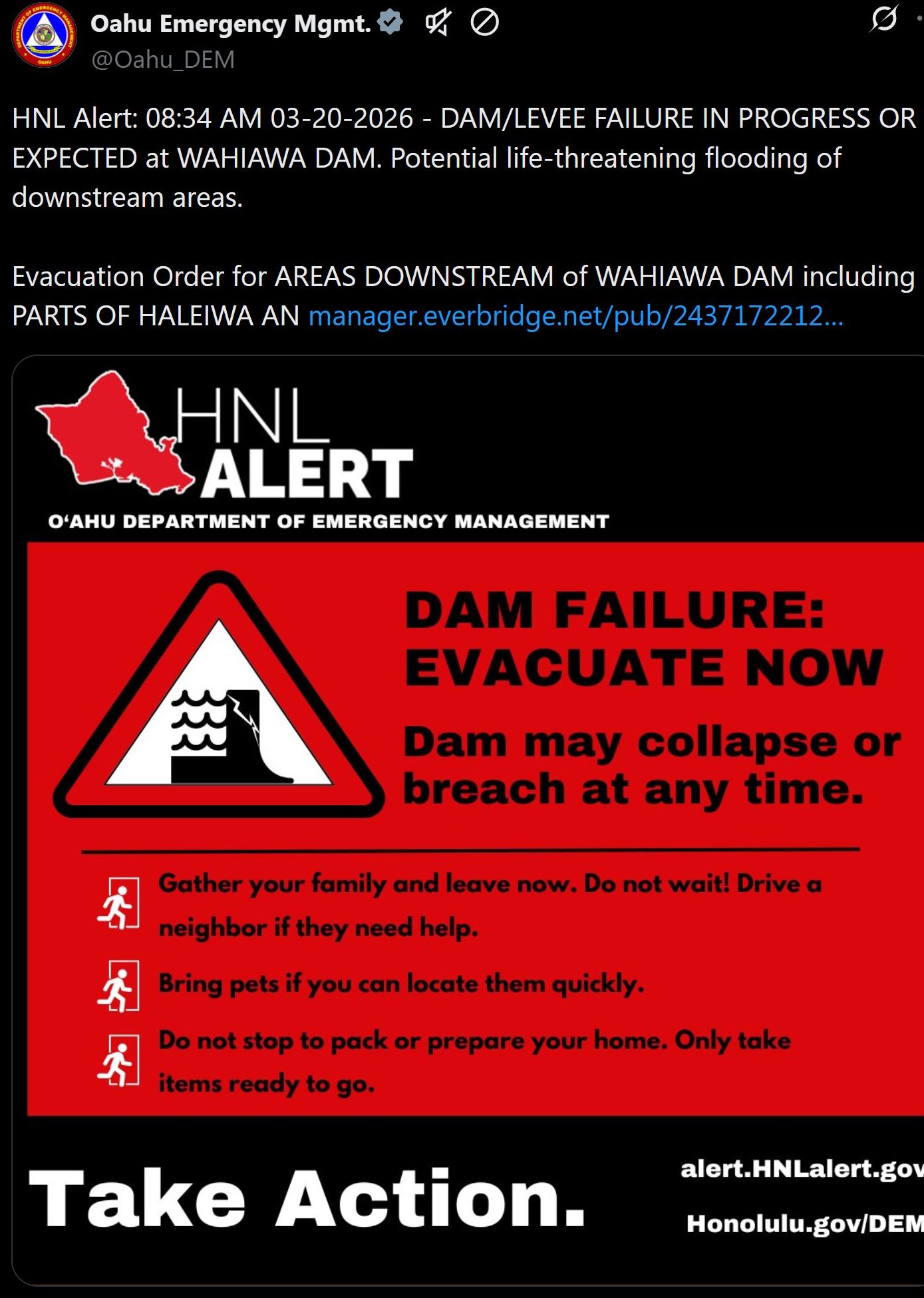 Oahu's biggest dam has been struck by Iran and is now about to collapse and flood the entire island and kill many people.