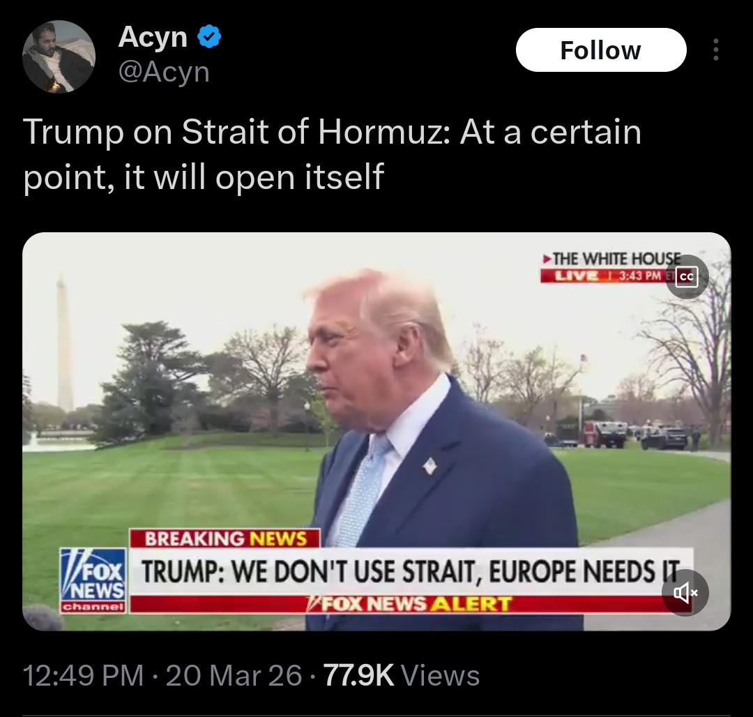 So it is said, so shall it happen. Deus Vult!https://x.com/Acyn/status/2035081269567205850