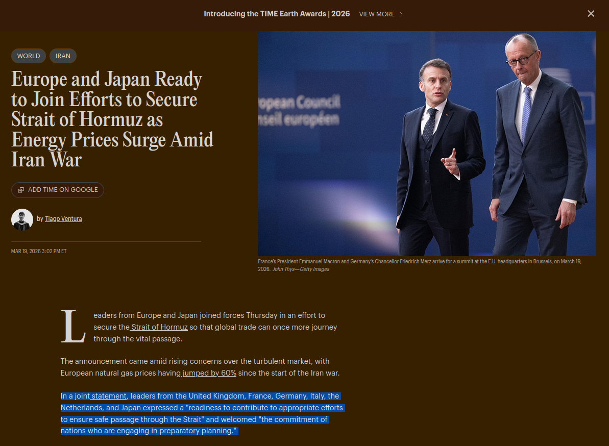 >>531225127Have you seen the news? You need to understand that the US has no problem with Europe. You have to get past political bluster and realize that we are best friends forever.>https://www.cbc.ca/news/world/canada-joint-statement-strait-hormuz-9.7135150>https://time.com/article/2026/03/19/europe-uk-japan-strait-of-hormuz-oil-gas-prices-iran-war/
