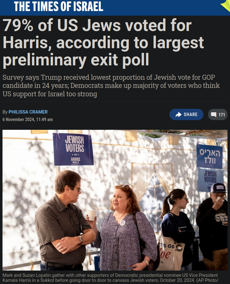 >>531225814>FUCK ZOGBy voting for Democrats? Come on buddy... the jews voted 80% for Kamala. How do you get around this inconvenient truth? If jews are your argument then you have to account for this data point, since they clearly wanted not Drumpf.