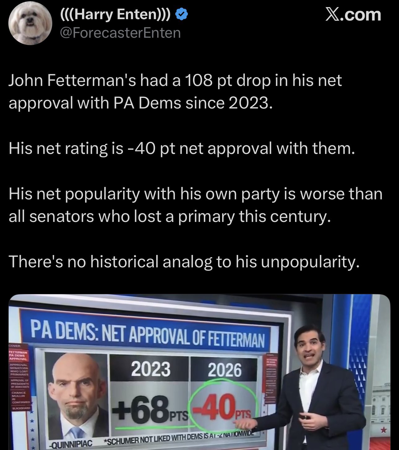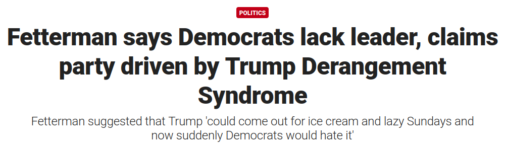 also Fetterman is going to go the way of Sinema minus sleeping with his bodyguard