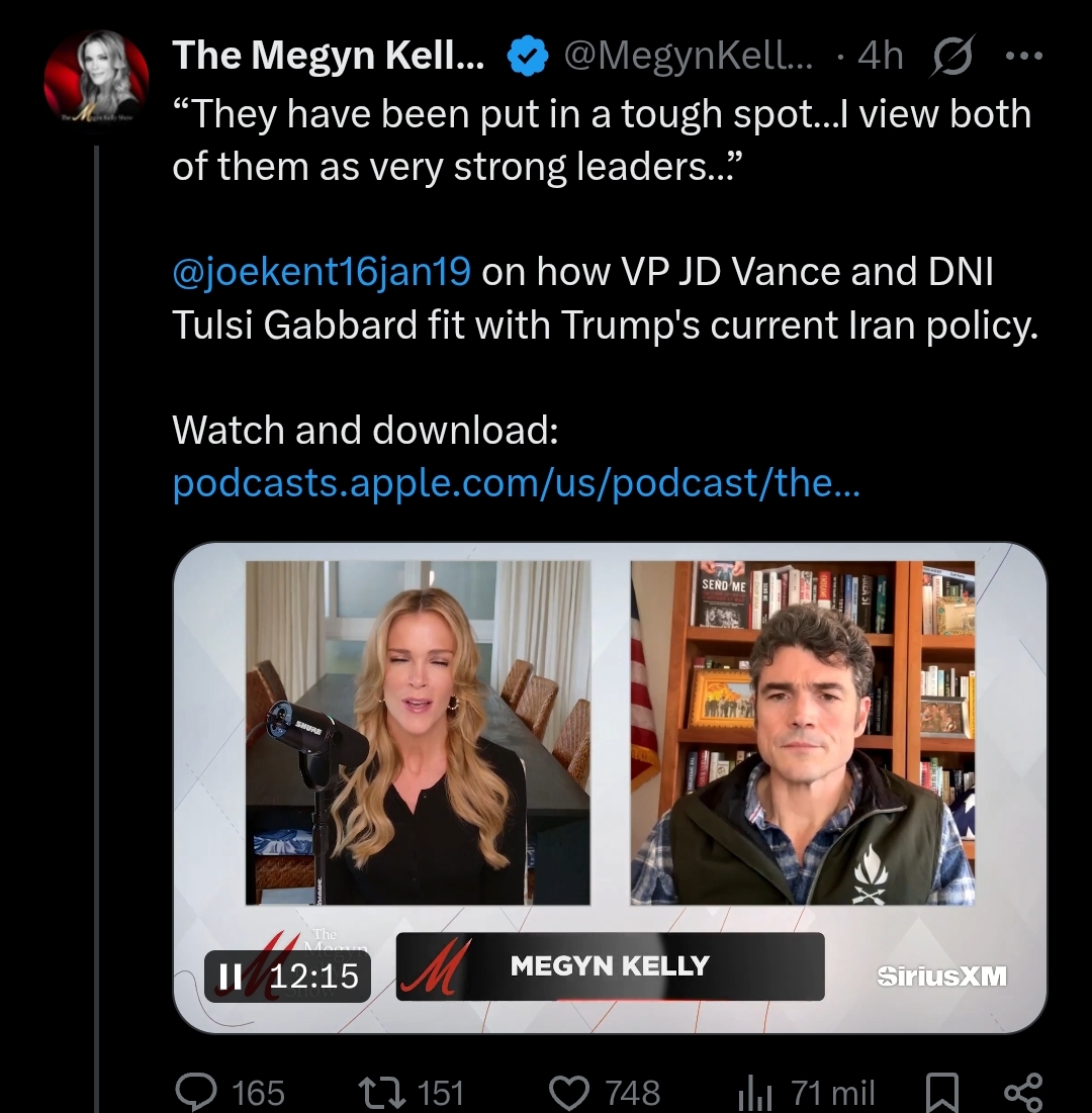 There is a non zero percent chance that Joe Kent blames everything on vance, they (the media) wouldnt even call him a liar because it would be extremely believable to believe vance was deeply involved. vance has been pro muslim for many many years nowAll I know is that I wouldn’t want to be caught being attached to vance if the shit really hits the fan