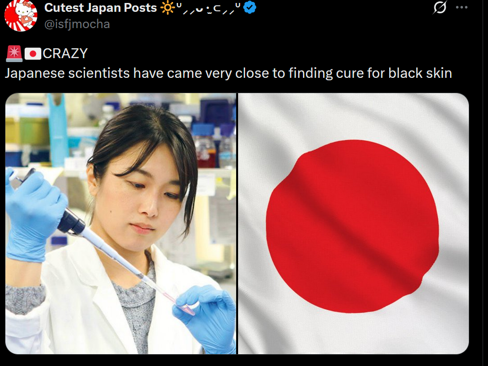 Well fellow white people, I know we've been taking serious L's for a long time and getting wiped out globally, but never fear, the honorary aryan Jap scientists have discovered a way to turn everyone white. The white race will now live on! Only with much bigger lips, noses and curlier hair. A small price to pay for the advancement of the white race!