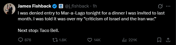 Joe Kent has confirmed that vance was punished by Trump and sent to the Tulsi Gabbard/Joe Kent/Tucker Carlson fake situation room in DC, while Rubio and Hegseth and Miller were invited to Mar O Lago by Trump. https://x.com/esaagar/status/2035070184143085815vance is now officially a third worldist groyper
