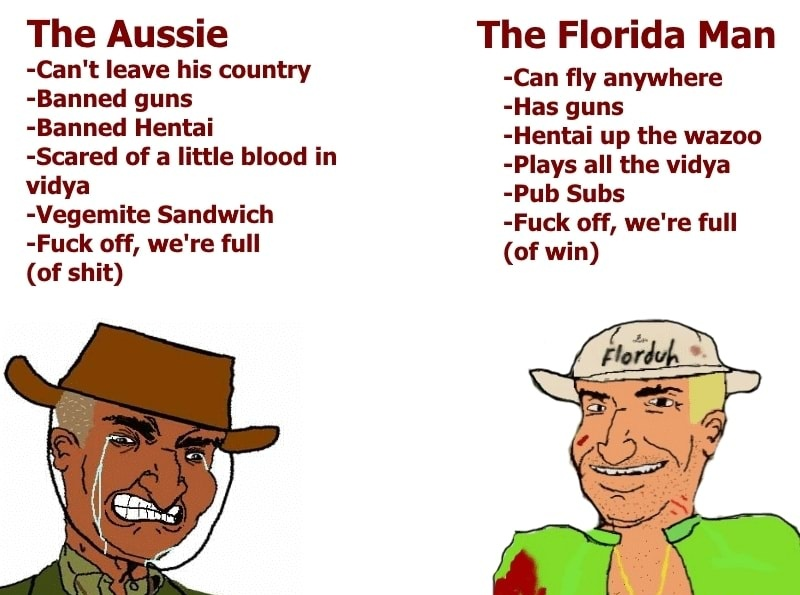>>531237858The weak pathetic aussie is no match for the FLORIDA MAN