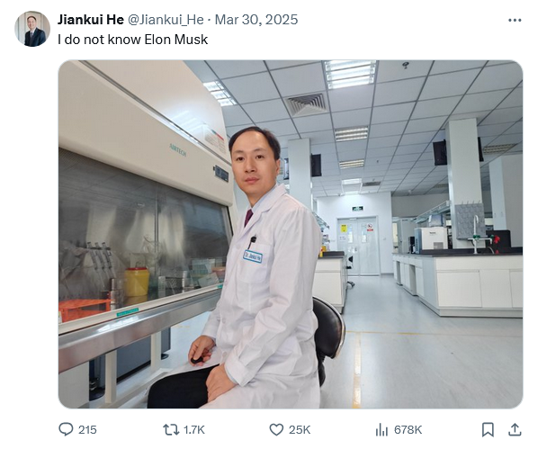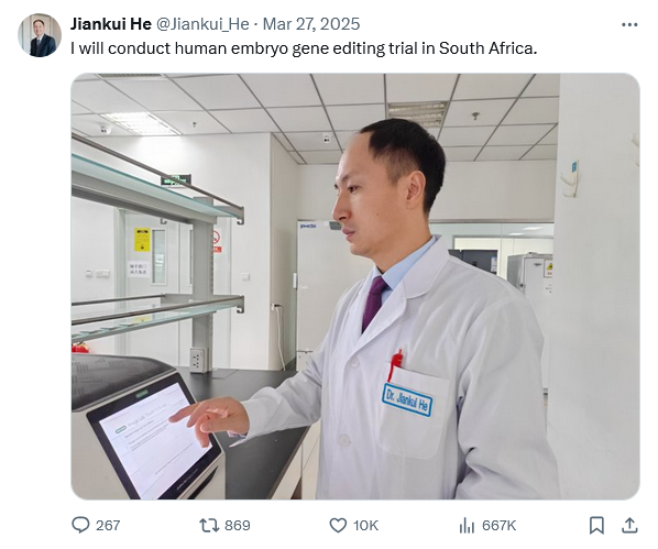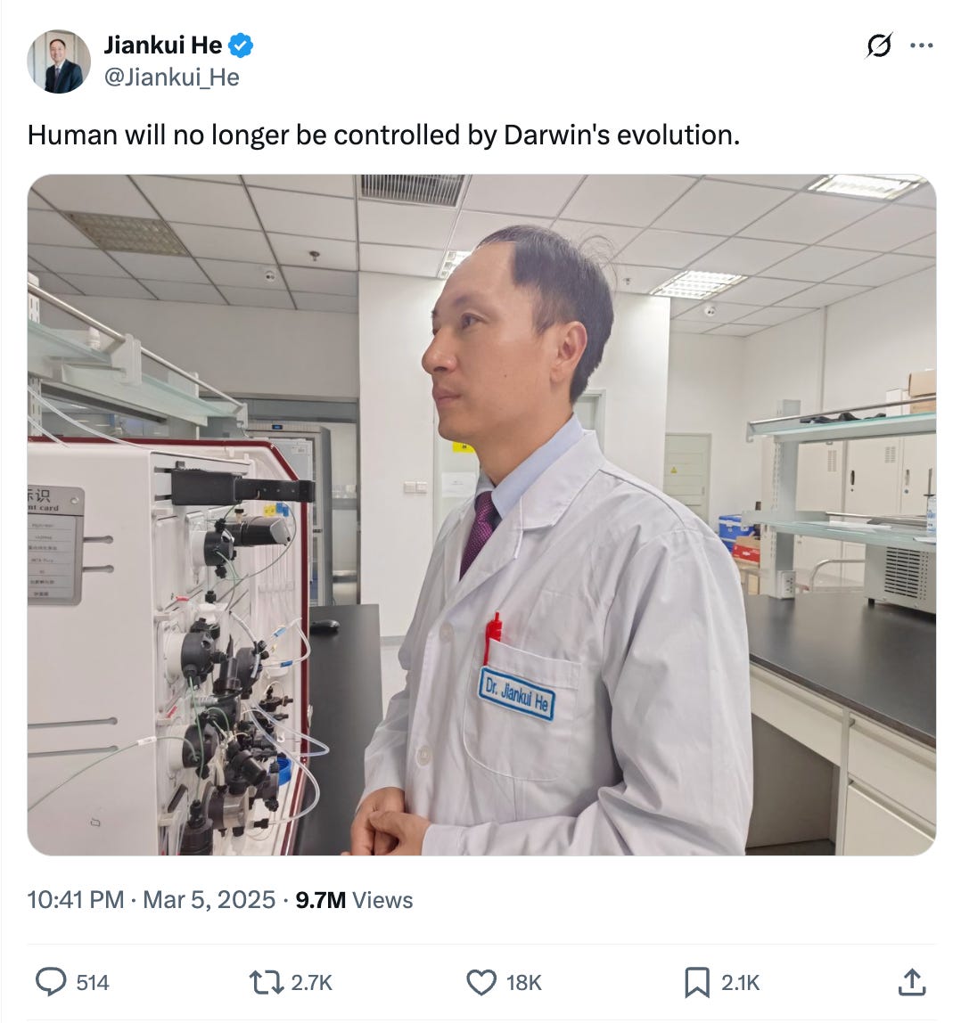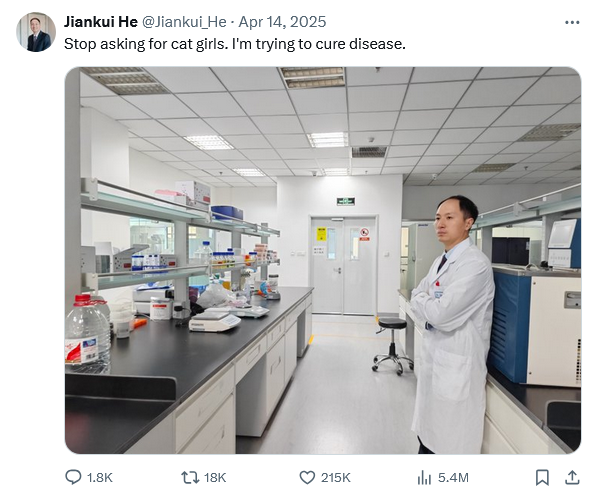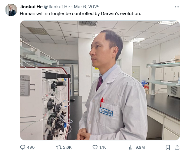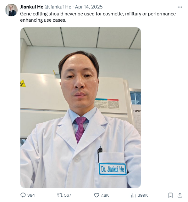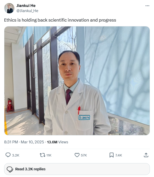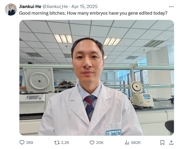 >>531240849>>531240962Yeah but he created the first gene edited children to be born. Let bro cook.