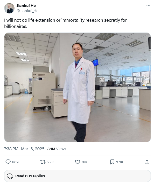 >>531241633Every statement he makes must be viewed through the lens of him being threatened by the chinese government. What this post actually says is "The highest bidder who can get me out of this country alive and provide me with a lab on par with what the CCP already provides will recieve the fruits of my labor."