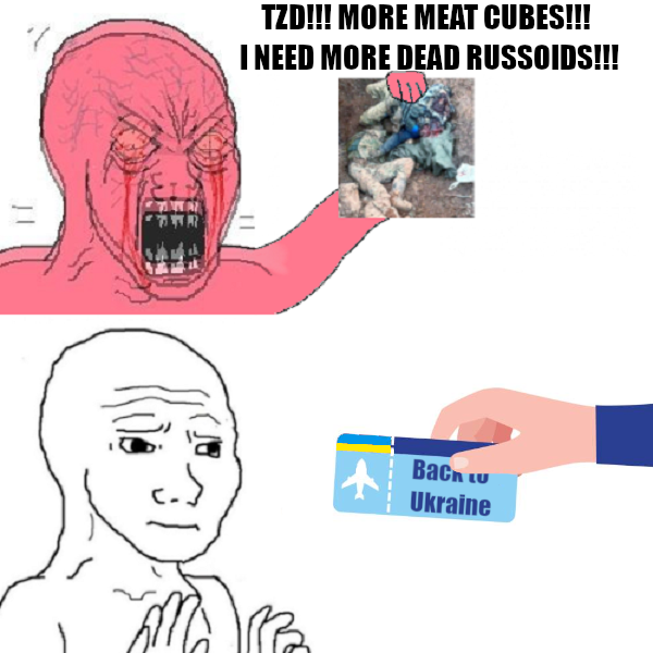 >>531250005>j-just give the russnigger your living room bro they won’t t-take the rest p-please I don’t want to get nuked! Good thing the Ukrainians aren’t cattle like you