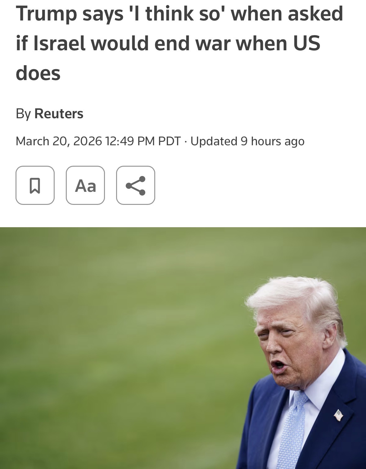 Trump can not say he knows so because he knows Israel does not obey Trump. Israel will do whatever it wants and Trump will be submissive