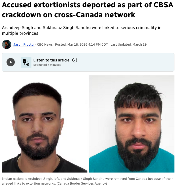 Canada deports Indian gang members linked to extortion cases.