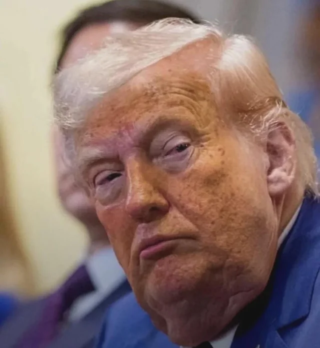 >>531252805Great photo - the REAL trump.Makeup on his face, trying to cover all the liver spots, but the skin on his ear and neck are sickly pale as death. Purple around his eyes, with a huge gob of fat hanging from his chin. The part of his hair shows how the comb-over isn't covering his baldness very well.