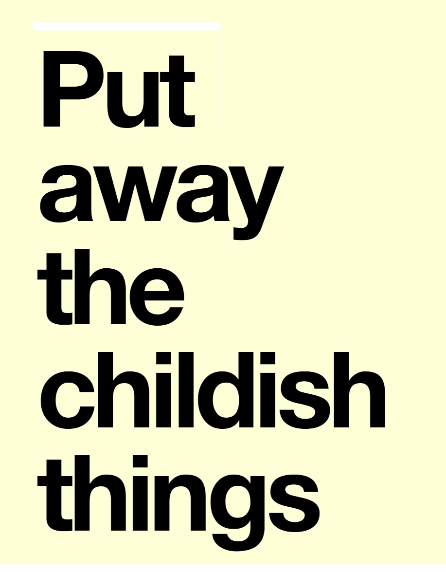 >>531253050I'll put away the childish things when you put away the slutty things.