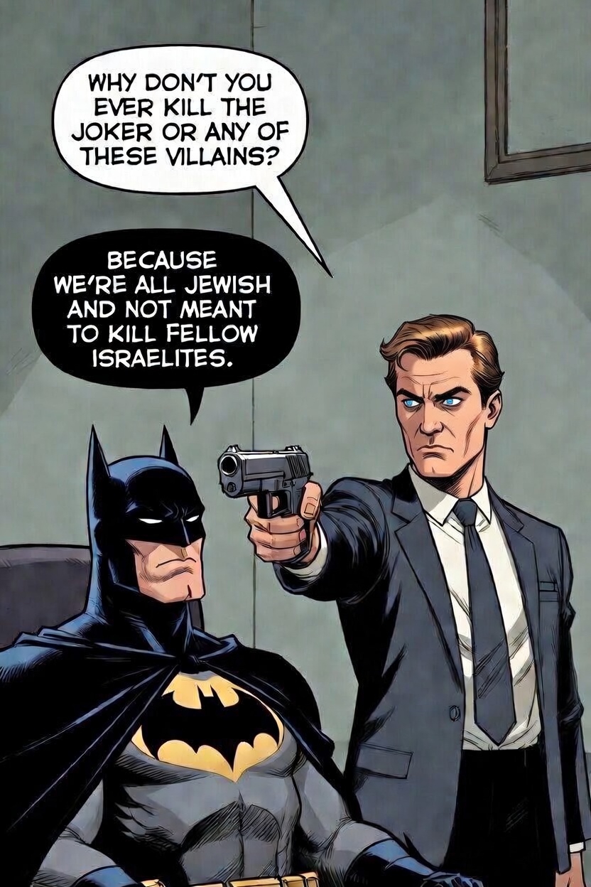 Capeshit like spiderman/batman/ superman has made western man pacified and demoralised.So to be the ultimate man which is when the people see you as a hero you don't wipe out the psychopathic murderers and agents of chaos like the joker instead you allow them to live and then they continue to wreck the everyday lives of the people living amongst them. All these "heroes" are just repackaged Jesus Christ archetypes meant to subdue the white race into superstitious delusions and non action.A real hero in Gotham city would be someone willing to burn the whole corrupt system down and kill the villains and also kill batman for allowing there continued survival.