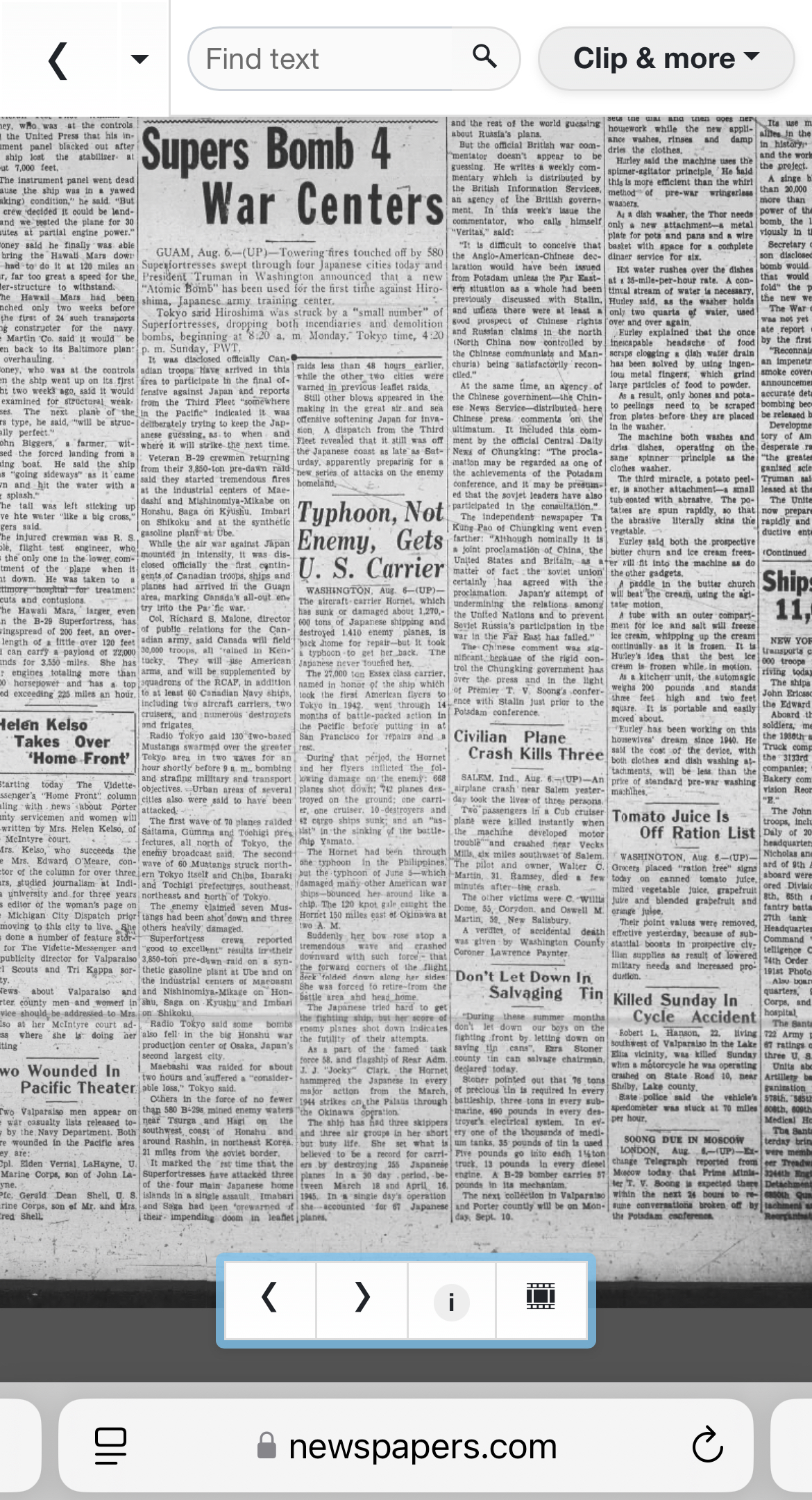 >>531254898Here, the full newspaper frontpage if anyone interested. Vidette messenger, Indiana Aug 1945