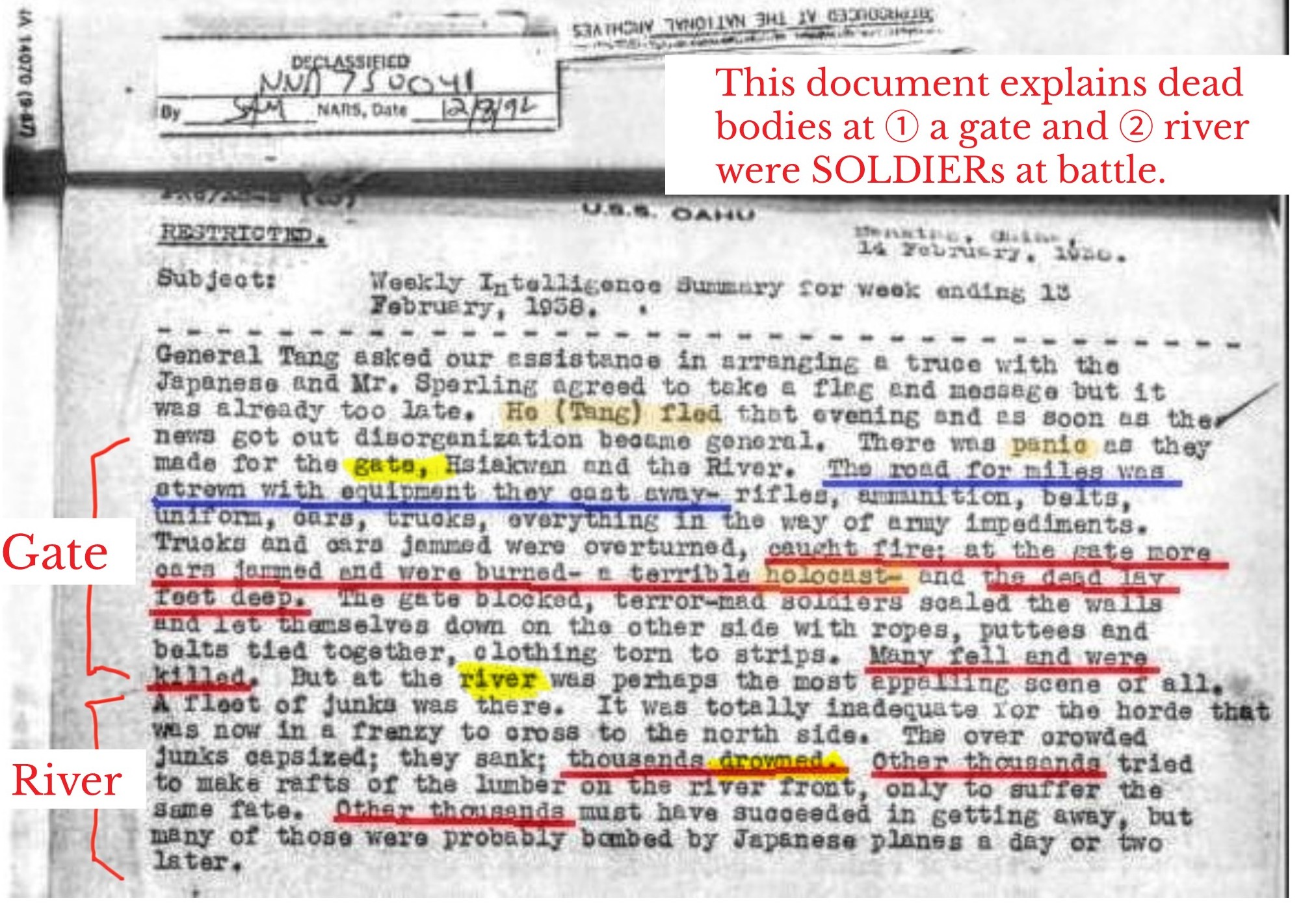 >>531263588>"It is not until we tour the city that we learn the extent of destruction. We come across corpses every 100 to 200 yards. The bodies of civilians that I examined had bullet holes in their backs. These people had presumably been fleeing and were shot from behind. The Japanese march through the city in groups of ten to twenty soldiers and loot the shops ... I watched with my own eyes as they looted the café of our German baker Herr Kiessling. Hempel's hotel was broken into as well, as almost every shop on Chung Shang and Taiping Road."