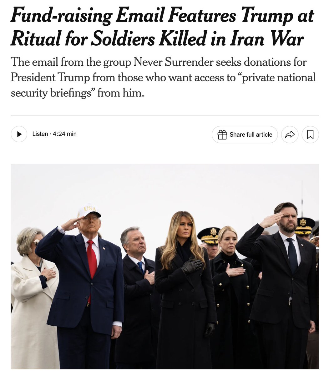 Nothing dignified about dying for israel on 40k a year. That orange retard trump was holding a 1 million per head dinner party in florida smiling ear to ear while americans were dying. But don't worry mom, he at least he ate lobster a couple hours before he died