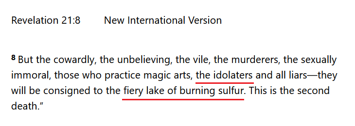 to Satan. All idolators are facing the fires of hell. They need to stop worshiping the flag cloth idol before it is too late.