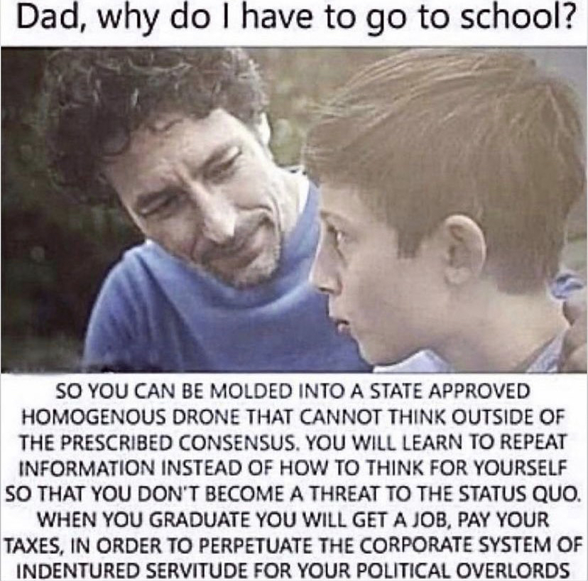 >>531286773I think that the philosophy behind this is the need for control. Like they say "If you're abusing your children the state needs to get involved." Humanitarian the philosophy has endless potential. Look up "reddit is homeschooling legal in europe" to see a bunch of europeans saying that homeschooling is a form of child abuse. The government is not the most efficient way to raise children.
