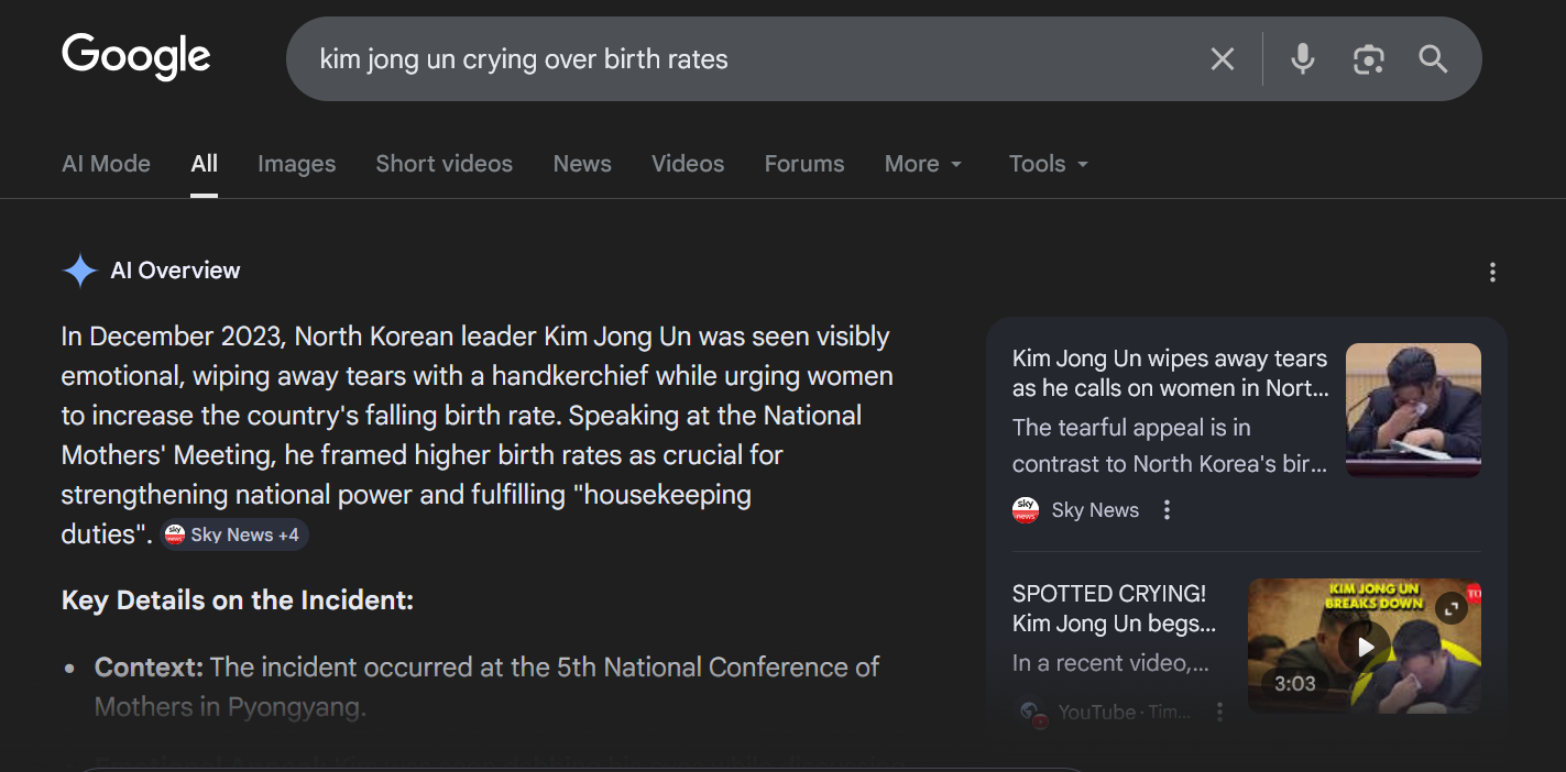 >>531259220Women are emotional creatures, crying strategy is more effective at getting the message to themYet another brilliant move from the Supreme Leader